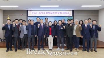 【브레이크뉴스 경북】이성현 기자=경상북도의회 Post-APEC 전략실현 연구회(대표의원 정경민)는 7일 경상북도 보건환경연구원에서 ‘Post-APEC 전략실현 연구회 세미나’를 열고, APEC 이후 경북의 지속가능한 발전 전략을 논의했다.