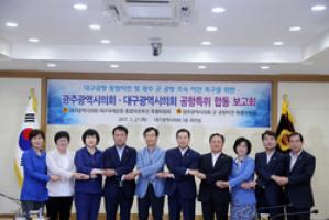 또한, 성명서 발표에 이어 진행된 대구‧광주시의회 공항특위 합동 보고회에는 대구시 공항추진본부와 광주시 군 공항이전사업단 관계 공무원 등 33명이 대거 참석해 현재까지 대구와 광주의 공항이전사업 진행상황과 향후 추진일정에 대해 설명했다.