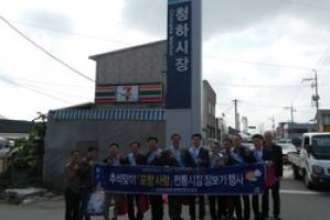 정석준 경제산업위원장 및 위원, 흥해읍과 청하면 기관 및 자생단체등이 참여해 추석맞이 제수용품과 생활용품을 직접 구입하고 전통시장을 찾은 방문객에게 포항사랑 상품권 홍보 캠페인도 벌였다.
