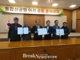 이날 3개 지자체 시민단체가 공동결의대회서 결의한 이전촉구서 및 공동 결의문은 는 국방부는 물론, 청와대 등 정부기관에 전달할 예정이다. 또, 한편으로는 통합신공항 사업을 진행함에 나타날 수 있는 여러 문제들에 대한 협조 및 공조 방안을 모색해 관련된 사안들을 공동대처하기로 했다.