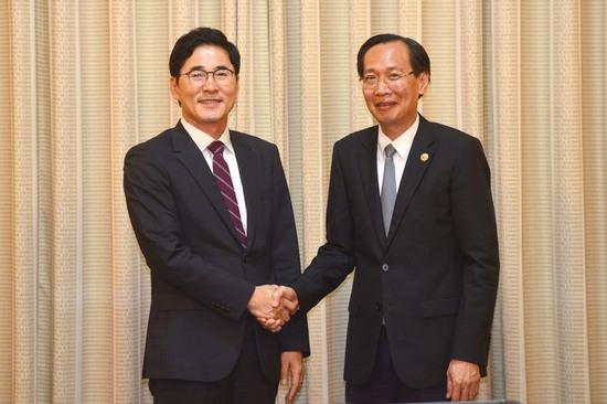| ▲ 김장주 행정부지사와 호찌민 시 부시장 이 행사 성공을 다짐하고 있다 © 경상북도 제공 |
