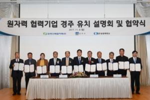 협약체결 기업은 경주로 이전이 결정된 한수원 협력기업 9개사로 ㈜진성아이텍, ㈜케이티씨글로벌, ㈜수산인더스트리, 에이스기전㈜, 수산ENS㈜, ㈜오르비텍, ㈜웨스코일렉트로드, ㈜이에스다산, ㈜코네스코퍼레이션 등이다.