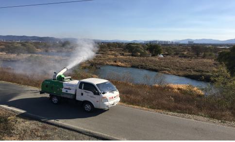 【브레이크뉴스 대구】박성원 기자= 대구시는 올 겨울 처음으로 전북 고창에서 ‘고병원성 AI’가 발생함에 따라 대구시 보건환경연구원 동물위생시험소 가축방역관이 철새도래지인 금호강 안심습지에서 20일 AI 예방을 위한 집중 소독을 실시했다고 21일 밝혔다.