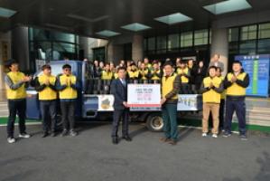 | ▲ 청평회 노동조합, 청도군에 사랑의 연탄 1,000장 기탁 모습 © 청도군 제공 |