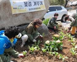 이날 연수원 내 재배하우스에서 키운 꽃을 활용해 마을을 찾는 사람들이 꽃을 보며 기분 좋은 시간을 가질 수 있도록 마을 입구와 길목에 꽃밭을 조성했다.
