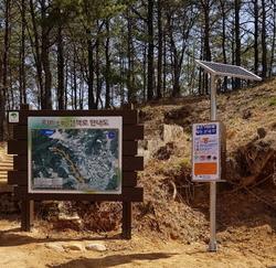 ▲ 옥대 산책로 입구에 설치된 해충 기피제 자동 분사기 © 영주시 제공