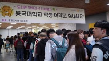 【브레이크뉴스 경주】김가이 기자= 동국대학교 경주캠퍼스 도서관(관장 이영경)은 지난 24일 오후 5시부터 동국대 경주캠퍼스 도서관 로비에서 중간고사 기간을 맞아 학생들을 위한 무료간식 나눔 행사를 실시했다고 25일 밝혔다.