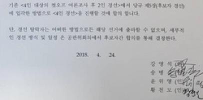 한국당 상주시장 후보 4인 경선으로 가린다박영문 위원장 제안에 4인 후보 동의 27 28일 양일간 실시