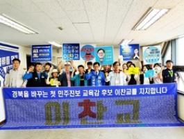 이날 2,015명의 김천시민들을 대신해 기자회견문을 낭독한 이윤배 김천민주시민단체협의회 의장(이하 김천민단협)은 “교육이야말로 공정하고 정의로와야 한다. 교육을 통해 소통하고, 교육을 통해 공감하고, 교육을 통해 배려하고, 교육을 통해 존중하고, 교육을 통해 존엄성을 찾는 새로운 교육이 필요하다.”며 이찬교 후보 지지선언의 이유를 설명했다.