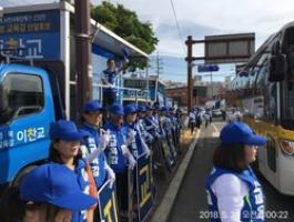 【브레이크뉴스 경북】이성현 기자= 이찬교 민주진보단일 경북교육감 후보는 31일 포항 형산교차로(구 형산강로타리)에서 6.13지방선거 출정식을 가졌다.