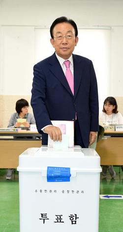 ▲ 12년 임기를 마치고 자연인으로 돌아가게 되는 김관용 경북도지사가 투표하고 있다 © 경상북도 제공