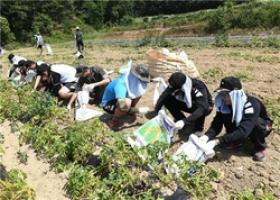 ▲ 경북 예천군 유천면 소재 농가를 방문해 감자 수확을 도왔다 ©16전비 제공