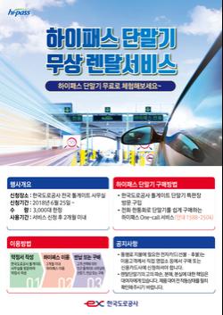 한국도로공사는 하이패스 이용경험이 없는 고객에게 하이패스 체험 기회를 제공하기 위해 3,000대 한정으로 ‘하이패스 단말기 무상 렌탈 서비스’를 실시한다.