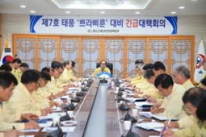 군에 따르면 이승율 군수는 이날 오전 제1회의실에서 각 실과소장과 9개 읍면장이 참석한 가운데 태풍 및 집중호우대비 긴급 재난안전대책회의를 주재했다.