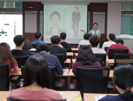 이 날 특강에는 여름방학 중임에도 취업을 준비하는 학생 30여명이 참석해 성공적인 면접을 위한 효과적인 이미지 메이킹 기법과 면접 자세에 대한 실습 및 피드백, 성공하는 직업인이 되기 위해 신입사원이 갖추어야 할 자세, 태도 등에 관한 강의를 들었다.
