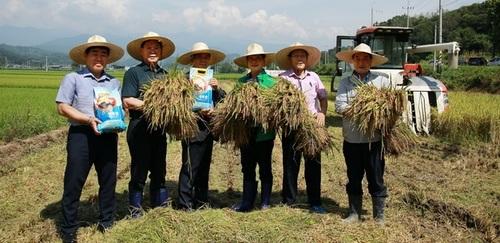 ▲ 영주 815광복쌀 첫 벼베기 모습 © 영주시 제공