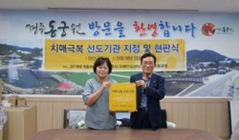 【브레이크뉴스 경주】김가이 기자= 경주시(시장 주낙영)는 경주시 보건소 치매안심센터에서 지난 20일 경주 동궁원을 치매극복 선도기관으로 지정하고 현판식을 가졌다고 21일 밝혔다.