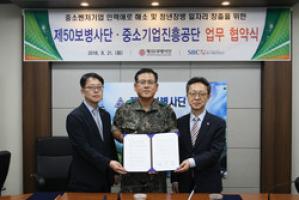 【브레이크뉴스 대구】박성원 기자= 중소기업진흥공단 대구지역본부(본부장 구재호)와 경북지역본부(본부장 송경준)는 육군 제50보병사단(사단장 정재학)과 21일 사단 본청에서 중소벤처기업 인력난 해소 및 청년장병 일자리 창출을 위한 업무협약을 체결했다고 22일 밝혔다.