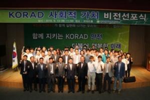 공단에 따르면 이날 사회적 가치비전으로 ‘함께 지키는 KORAD 안전, 더불어 행복한미래’를 제시했다.