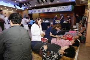경주 동인내과는 양북면 지역 65세 이상의료 취약계층 200여명을 대상으로 혈압검사 등 일반검진과 영양제 투여 등의 서비스를 제공했다.