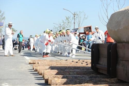 월정교 서편 광장에는 석공 명장들이 신라 선덕여왕 때 완성된 국보 31호 첨성대의 석조물을 직접 다듬고 옛 축조방식으로 그대로 재현하는 퍼포먼스와 읍면동별 청장년 30여명이 첨성대에 사용된 거석을 전통 운반기법으로 운반하는 거석 나르기 대항전을 펼쳐 또 다른 볼거리를 제공했다.