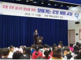 이날 포항 대해초등학교 강당에서 열린 행사에는 박철휴 한국로봇융합연구원장과 조민성 포항시의원 등이 300명의 학생들이 참여해 ‘휴머노이드로봇 댄스공연, 물고기로봇 조종, 배틀봇 겨루기 등 다양한 로봇체험과 코딩 원리에 대해 배우고 직접 만든 로봇으로 경기를 체험하는 시간을 가졌다.