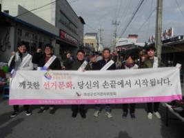 이날 캠페인에서 의성선관위의 직원과 공정선거지원단 등 10여명은 안계공설시장 곳곳을 순회하면서 안계시장을 찾은 상인과 조합원들에게 제2회 전국동시조합장선거에 있어 선거관련금품의 기부행위를 근절하고, 정치후원금 기부를 활성화하자는 내용의 유권자 인식 개선 캠페인을 벌였다.