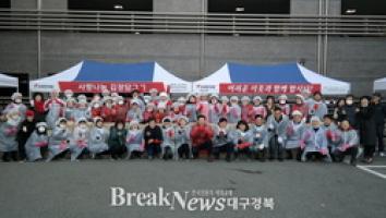 대구시당은 5일 당사 주차장에서 사랑나눔 김장 담그기 행사를 갖고 각 당원협의회별로 저소득 및 조손가정 각 30세대 총 360세대에 김장김치를 전달했다.
