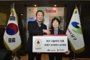 조재구 남구청장은 “지속적인 나눔참여로 우리 주위의 소외된 이웃들이 따뜻함을 느끼고 행복할 수 있는 남구를 만들고 싶다”고 전했다.