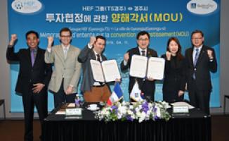 시에 따르면 11일 서울 중구 태평로에 소재한 플라자 호텔에서 주낙영 경주시장, 프랑스 HEF 그룹 파브리스 프로스트(Mr. Fabrice Prost) 회장 등 10여명이 참석한 가운데 외국인투자기업 ㈜TS경주 설립을 위한 투자양해각서(MOU)를 체결했다.