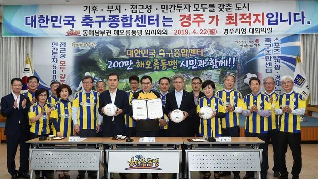 【브레이크뉴스 경주】김가이 기자= 동해남부권 해오름동맹도시(울산광역시·포항시·경주시) 200만 시민이 대한민국 축구종합센터의 경주시 유치 지지를 선언했다.