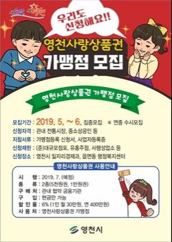 【브레이크뉴스 영천】김상호 기자= 영천시(시장 최기문)는 영천사랑상품권 가맹점을 오는 6월까지 집중 모집한다고 20일 밝혔다.