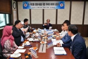 군에 따르면 이날 상담회는 농수산식품유통공사(aT)에서 주최하는 ‘바이 코리아 푸드 2019’참석차 한국에 방문한 두바이 현지 바이어인 Foodya의 Rashed Saif Al Bedwawi 대표, Komanco의 고재유 대표, 그리고 농수산식품유통공사 두바이 지사 송민규 과장 일행이 청도 감말랭이, 반건시를 포함한 청도군 농·특산물에큰 관심을 보여 국내 수출업체인㈜누림트레이닝의 이상진, 연준용 대표, G.S Trade의 김은식 대표와 함께 직접 청도군수를 만나 우수 농‧특산물 수출 확대를 위한 정책과 방향에 대해 토의했다.