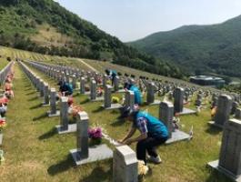 현충탑 참배, 묘비닦기, 환경정화 활동, 호국영령의 숭고한 넋 기려