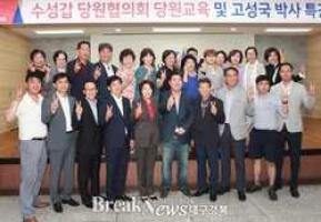 ▲ 13일 당원교육에 참석한 수성갑 지역 당원협의회 관계자들. 이날 교육에는 고성국 박사도 강사로 참석했다