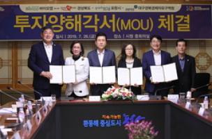 경자청은 26일 포항시청에서 전우헌 경상북도 경제부지사, 이강덕 포항시장과 함께 ㈜바이오앱의 포항융합기술산업지구내 투자양해각서(MOU)를 체결하고 바이오산업에 대한 투자 유치에 적극 나서기로 했다.