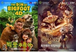 먼저, ‘빅풋주니어’는 주인공 아담이 빅풋인 아빠를 찾아 나서며 겪는 모험과 가족애를 그린 애니메이션이다. 드넓은 대자연의 풍경과 다양한동물들이 출연하는 입체 영상은 관객들로 하여금 실제로 대자연 속에 있는 것 같은 경험을 선사할 것이다. ‘회전목마 타임머신’은 다섯 친구들이 회전목마 타임머신을 타고 끝없는 시간여행을 하며 겪는 모험 이야기로 화려한 영상미가 돋보이는 애니메이션이다. 관람료는 성인 2천원, 어린이 천원이다.
