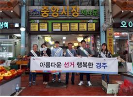 【브레이크뉴스 경주】김가이 기자= 경주시선거관리위원회(위원장 백정현)는 지난 27일 5일장이 열리는 경주 중앙시장을 찾아 기부행위 상시제한 홍보 캠페인을 실시했다고 30일 밝혔다.