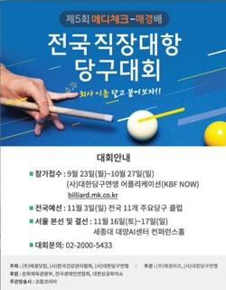참가접수는 9월 24일부터 10월 27일까지 온라인으로만가능하며, 예선은 11월 3일전국 8개 권역별 10개 당구클럽에서, 본선 및 결선은 11월 16일,17일 양일에 걸쳐 세종대학교 대양AI홀 컨퍼런스홀에서 열릴 예정이다.