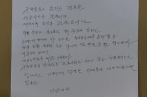 3일 대구 남구청(구청장 조재구)에 따르면 지난 27일, 조재구 남구청장은 경기도 안산에 사는 익명의 한 시민으로부터 소포를 받았다. 소포 안에는 ‘구청장님이 흘리신 눈물은 대구시민의 눈물이자 대한민국 국민의 눈물입니다’, ‘힘내시고 이 어려운 역경을 지혜롭게 대처하셨으면 합니다’ 등의 내용으로 직접 쓴 손편지 한통이 들어있었다.