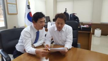 ▲ (사진 왼쪽) 오중기 후보가 (사진 오른쪽) 임종석 대통령 전 비서실장 © 오중기 선서사무소 제공