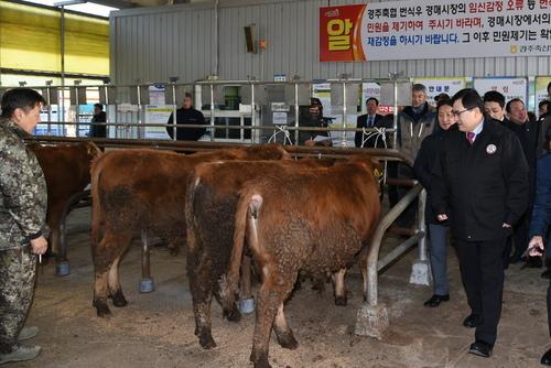 ▲ 신년 가축시장 찾아 현장밀착행정을 하고 있는 주낙영 경주시장 © 경주시 제공