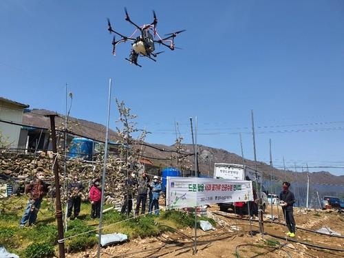 【브레이크뉴스 경주】김가이 기자= 경주시농업기술센터는 지난 21일 산내면 일원에서 최근 농업현장에서 다방면으로 활용도가 높은 드론을 활용한 사과 꽃가루 인공수분 연시회를 가졌다고 22일 밝혔다.