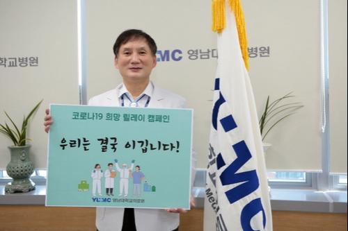 【브레이크뉴스 대구】이성현 기자= 영남대의료원은 지난 7일 김태년 의료원장이 대구파티마병원 박진미 병원장의 추천으로 ‘코로나19 극복 희망 릴레이 캠페인’에 동참했다고 8일 밝혔다.