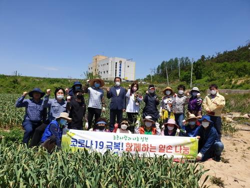 이날 환경연수원 봉사단원과 직원들은 작업 시기를 놓치면 마늘 상품성이 떨어지게 되는 마늘종 뽑기 작업을 도왔다.