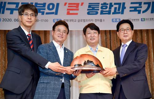 (사)대구경북학회가 주관이 되어 3일 경북대학교 글로벌플라자에서는 첫 논의인 '대구경북의 큰 통합과 국가균형발전"이라는 주제로 세미나가 열렸다. 세미나에는 이철우 경상북도지사와 권영진 대구시장을 비롯, 이달곤 국회의원, 오창균 대구경북연구원장, 하혜수 경북대 교수, 최철영 (사)대구경북학회장 등이 참석했다.