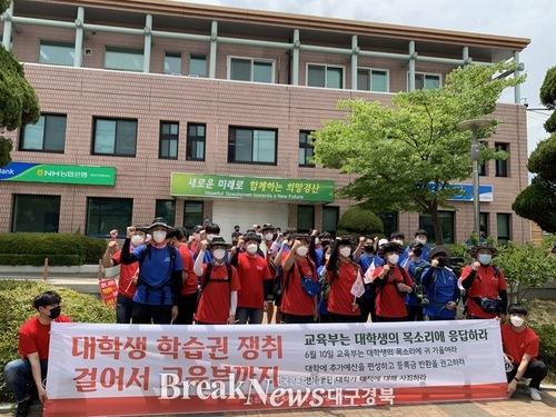 지난 1일 코로나19로 1학기 수업이 전면 비대면 강의로 전환된 것에 대해 학습권 보장과 등록금 환불을 요구하며 시작된 경북 경산지역 5개 대학(영남대, 대구대, 대구가톨릭대, 대구한의대, 경일대) 총학생회장단의 종주는 10일 세종시에 있는 교육부에 도착하면서 마무리됐다.