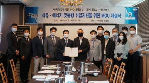 【브레이크뉴스 대구】이성현 기자= 한국석유관리원 대구경북본부(본부장 임의순)는 지난 19일 계명대학교산학인재원(원장 김범준)과 석유․에너지 분야 맞춤형 취업지원프로그램교육을 지원을위한 업무협약을 체결했다고 22일 밝혔다.