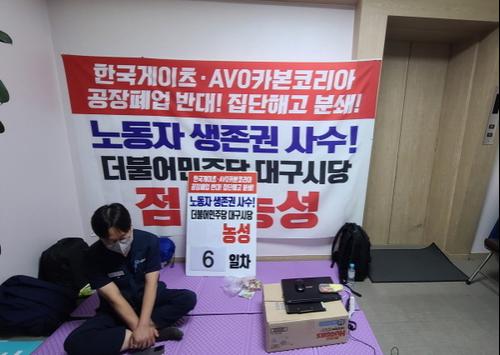 한국게이츠 노조와 한국금속노조는 7월 9일 이래 6일째 민주당사 복도에서 농성을 이어가고 있다. 대구시당은 한국게이츠 직원들의 생존권 차원에서 공장이 재개될 수 있도록 모든 당력을 동원할 것이라고 밝혔다. <저작권자 ⓒ 브레이크뉴스 대구경북 무단전재 및 재배포 금지>