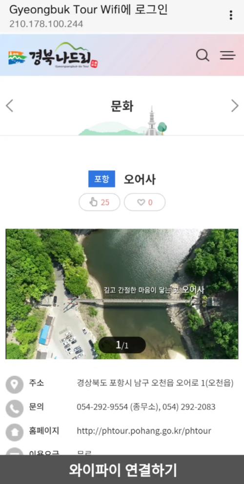 아울러, 스마트관광안내서비스 제공을 위한 관광콘텐츠는 경상북도 공식 관광사이트‘경북나드리(tour.gb.go.kr)’에서 제공하고 있다. 따라서 해당 대상지를 방문하지 않더라도 경북나드리에서 유용한 여행정보를 얻을 수 있다.